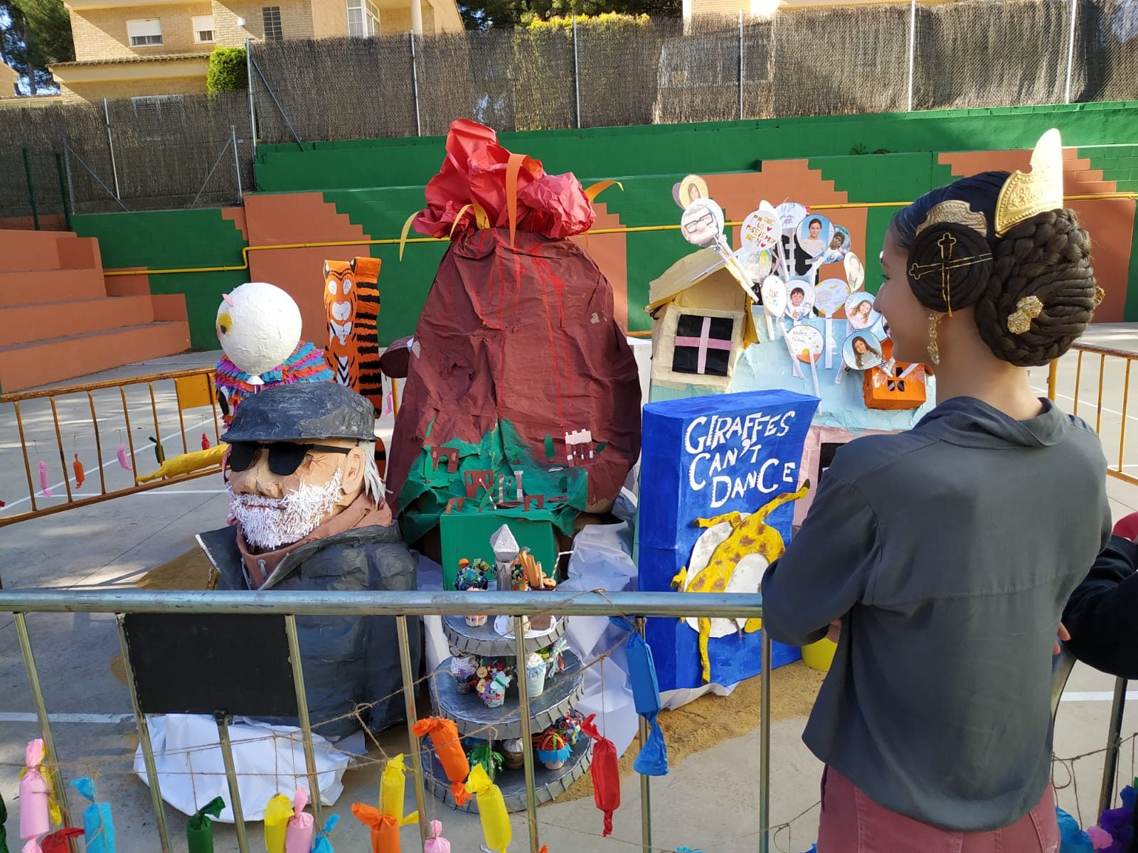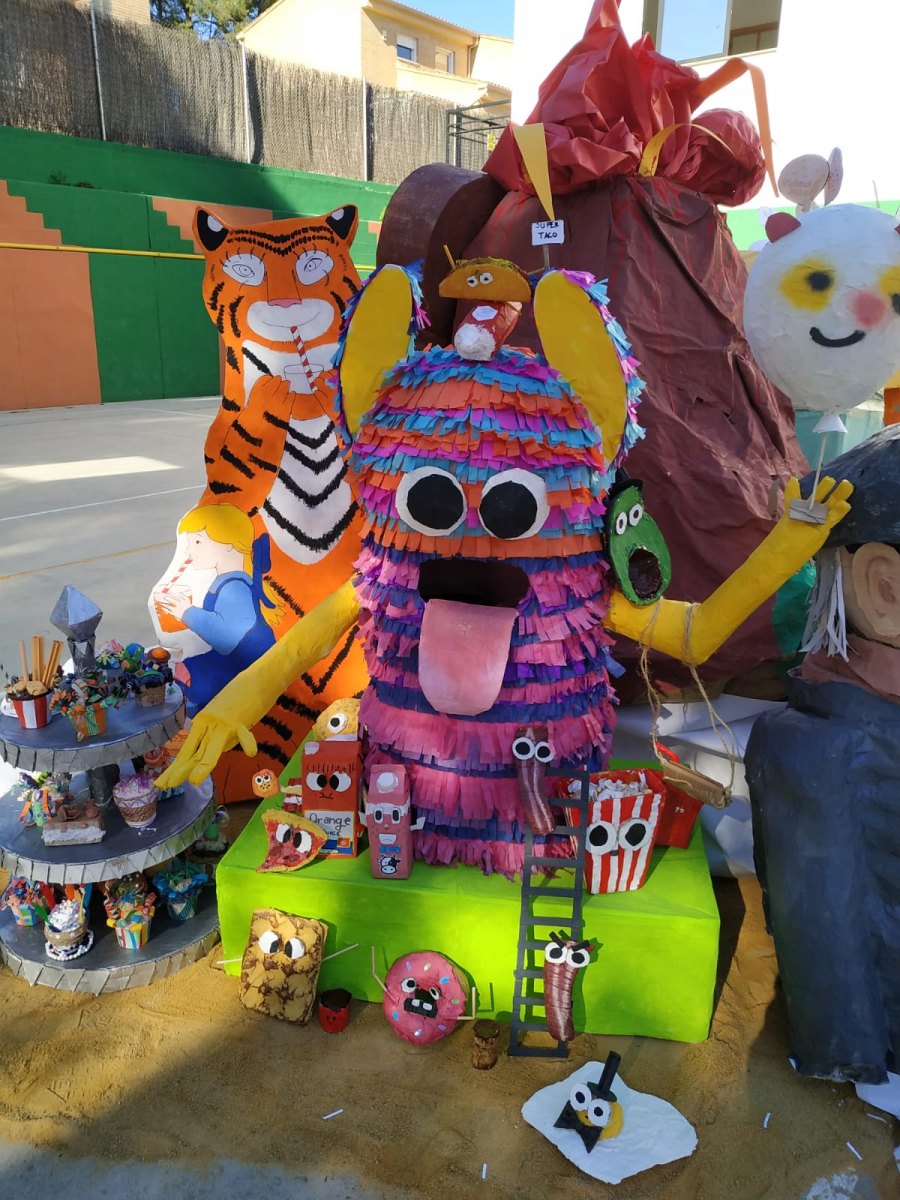 Como todos los años, esa misma mañana reunimos en el patio de Secundaria todos los ninots que habían realizado los distintos cursos y montamos nuestra falla. Una vez plantada, vinieron todos los niños para ver lo bien que había quedado y disfrutar mirando las distintas escenas de su falla.